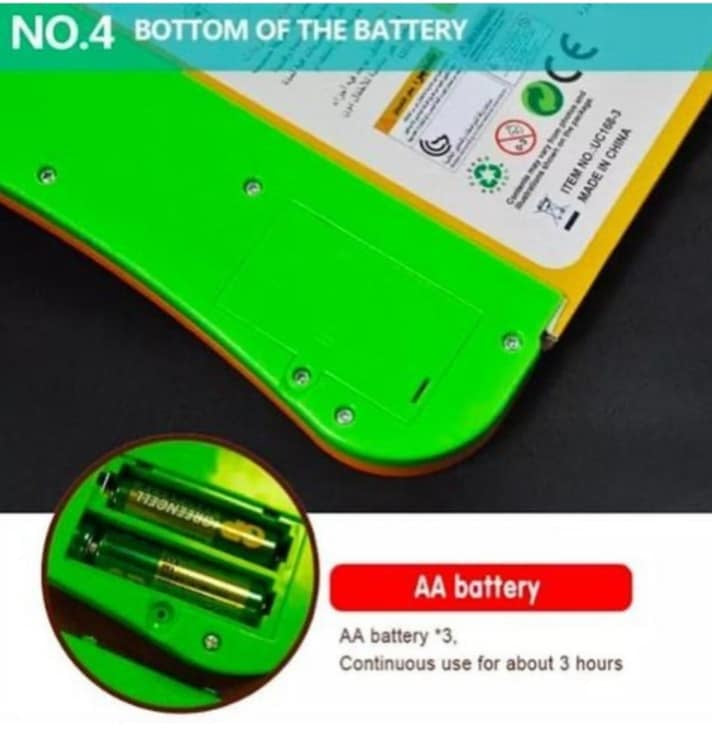 • Powered with 3 AA Batteries (not included). Every page has a button for the sound. Please press the button first to start the page